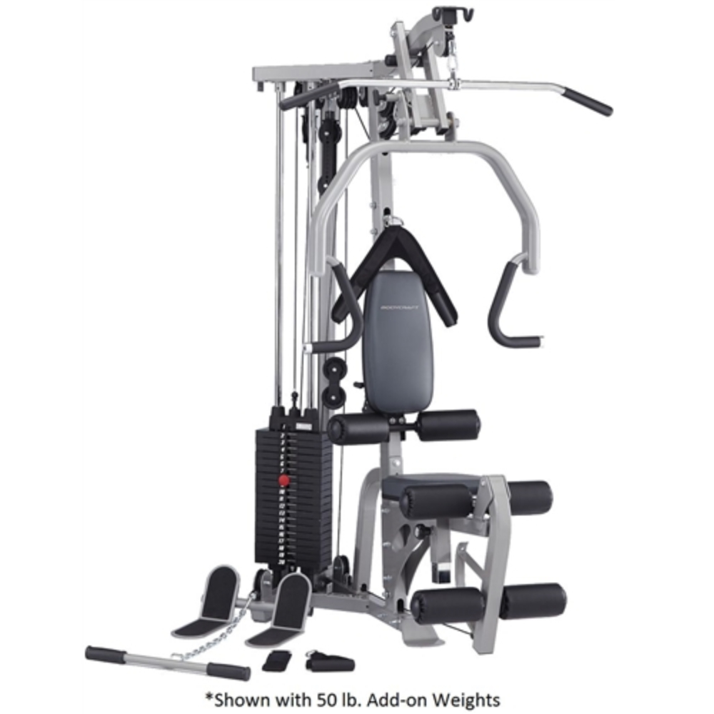 Weight Stack : 150 lbs. in 10 lb. increments. Precision milled cast steel plates with nylon bushings for smooth action. Upgrade to 200 pounds available.